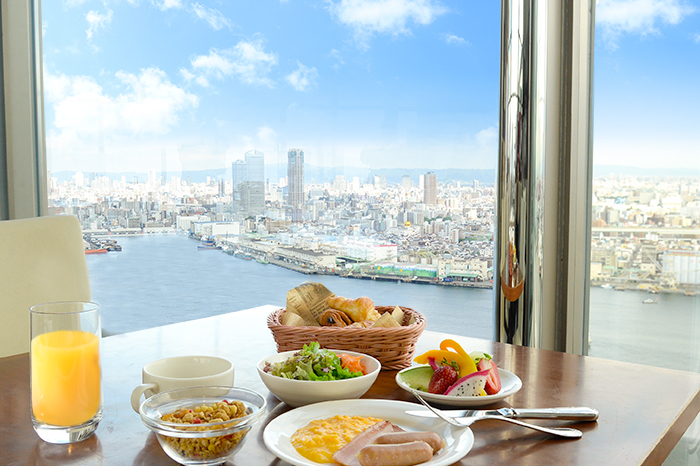 7미터 높이의 전면 통유리창으로 쏟아지는 아침 햇살을 받으며 프리미엄 조식을 즐기십시오.