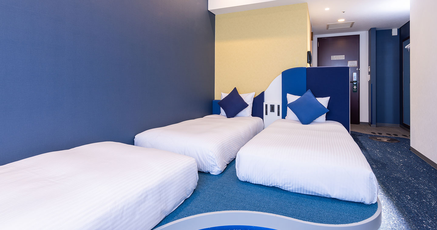 ・25㎡ ・可入住人數:2~3人※最多加1張床同住3個人 ・衛浴一體 ・採用錯層設計的低床房型 ・一個6歲以下的兒童可以與一位成人共用一張床